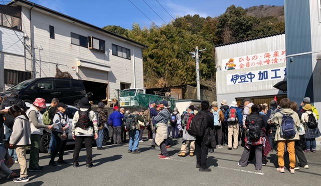 ご参加いただいた皆様、本日は誠にありがとうございました。春の様な陽気に恵まれ、早春の満開の桜、みかんの丘の景観、干物工場・ビール工場の見学、古屋園様での映画撮影の裏話と楽しんでいただけたと思っております。